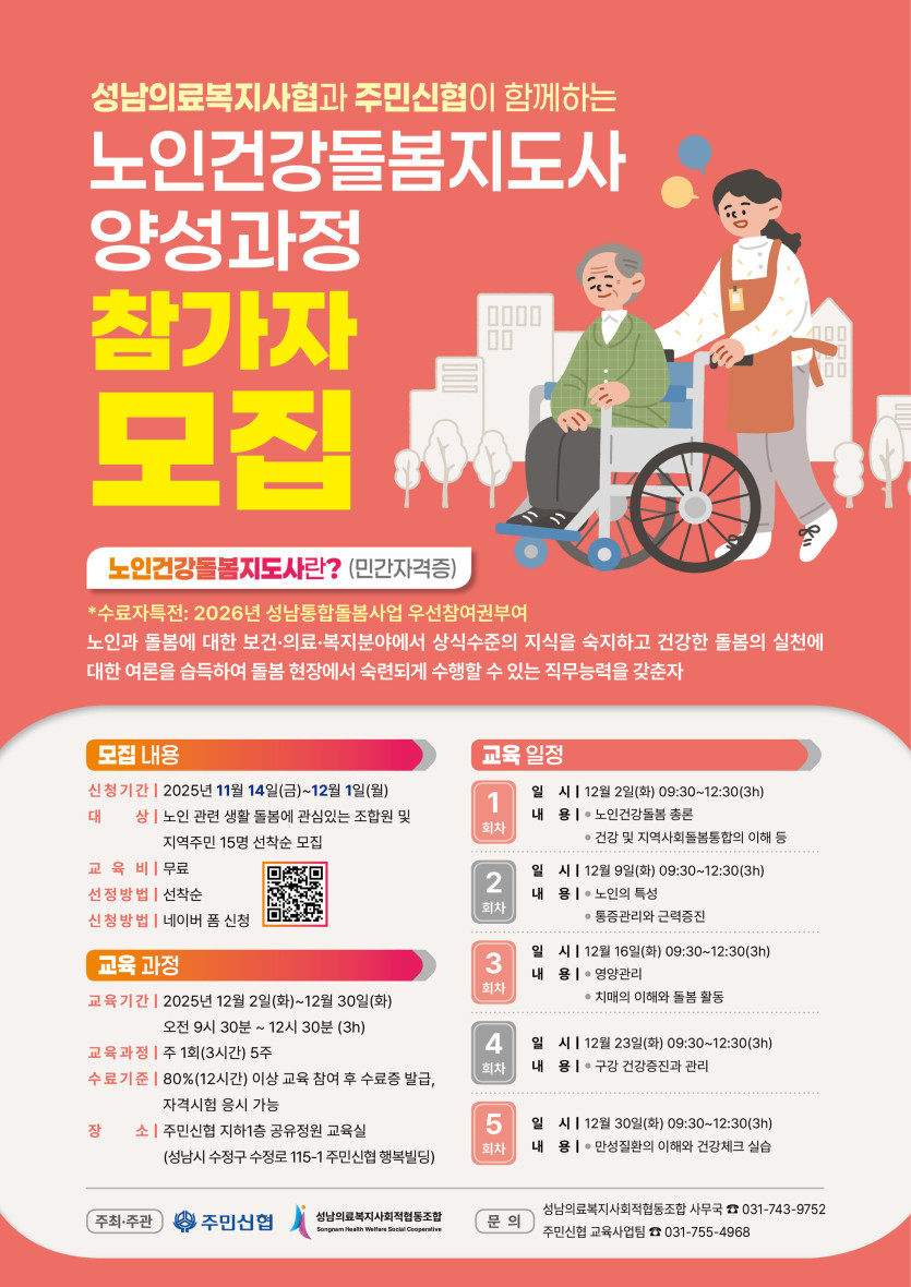 성남의료복지사협과 주민신협이 함께하는 [노인건강돌봄지도사 양성과정]